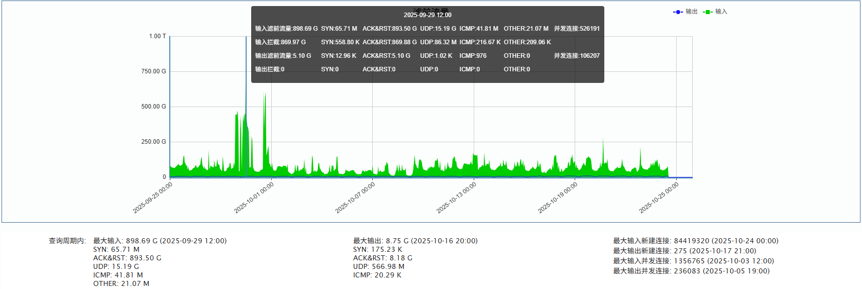 2025年10月,网络安全防护进入新一轮严峻考验,与年中相比,近期攻击行为在频率与复杂度上均显著提升,除传统的大流量洪泛攻击外, 更出现了“多向并发”与“分布式探测”并行的新型攻击模式。攻击者通过高并发端口扫描、漏洞探测与流量混淆技术,对目标网络进行持续性资源摸排,形成更具针对性与隐蔽性的攻击链。 这类攻击方式使得流量特征更加离散、检测难度显著提高,对防御体系的实时响应能力提出了更高要求。