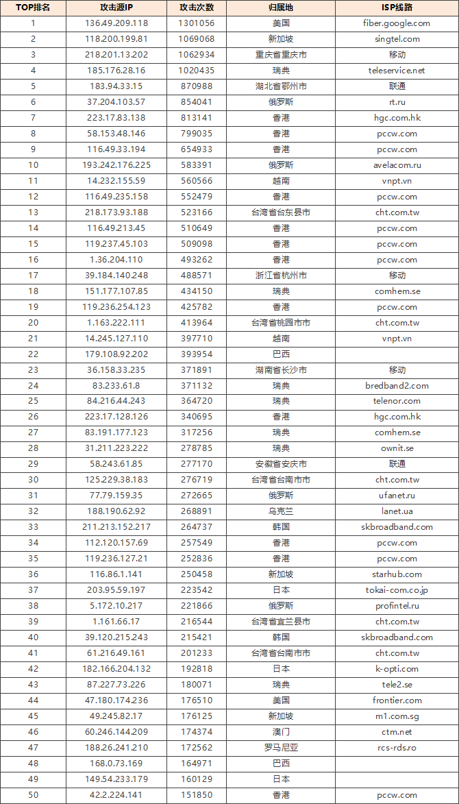 ③攻击源分布事项: