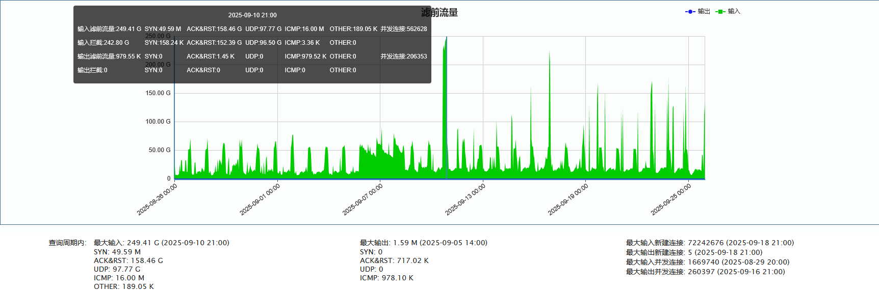►联通方向:单次最大攻击流量为249.41 Gbps(发生于 2025-09-10 21:00至21:10时段)