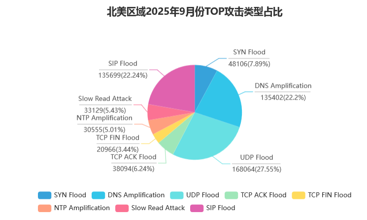 流量监测和防御措施:依托这套 “智能识别 + 定制防护 + 全流程监控” 的防御体系,傲盾在 9 月成功抵御多起超大规模攻击, 如华北区域移动方向 504.87G 流量攻击、北美区域 801.00G 流量攻击等,核心客户业务连续性保障率达 100%。本简系统的梳理 9 月各区域攻击概况, 详解防御技术的应用逻辑与实际成效,为各行业应对后续 DDoS 威胁提供实战参考,助力企业在数字化转型中筑牢安全防线。
