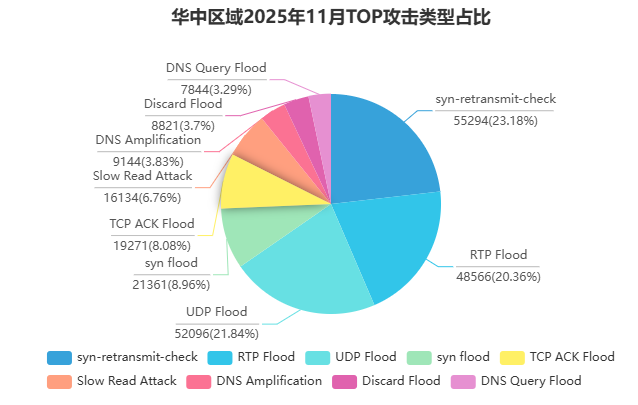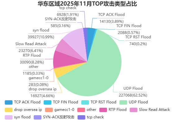 • 区域差异明显:华北以高次数短时攻击为主,华中以超大流量攻击领跑,全国攻击压力结构呈现多样化特征。