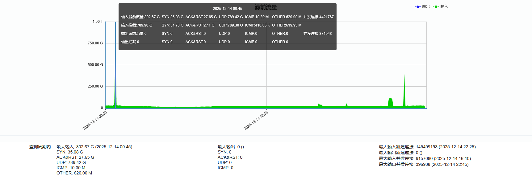 ►单次最大攻击流量802.67 Gbps(发生于 2025-12-14 00:45至2025-12-14 00:50时段)
