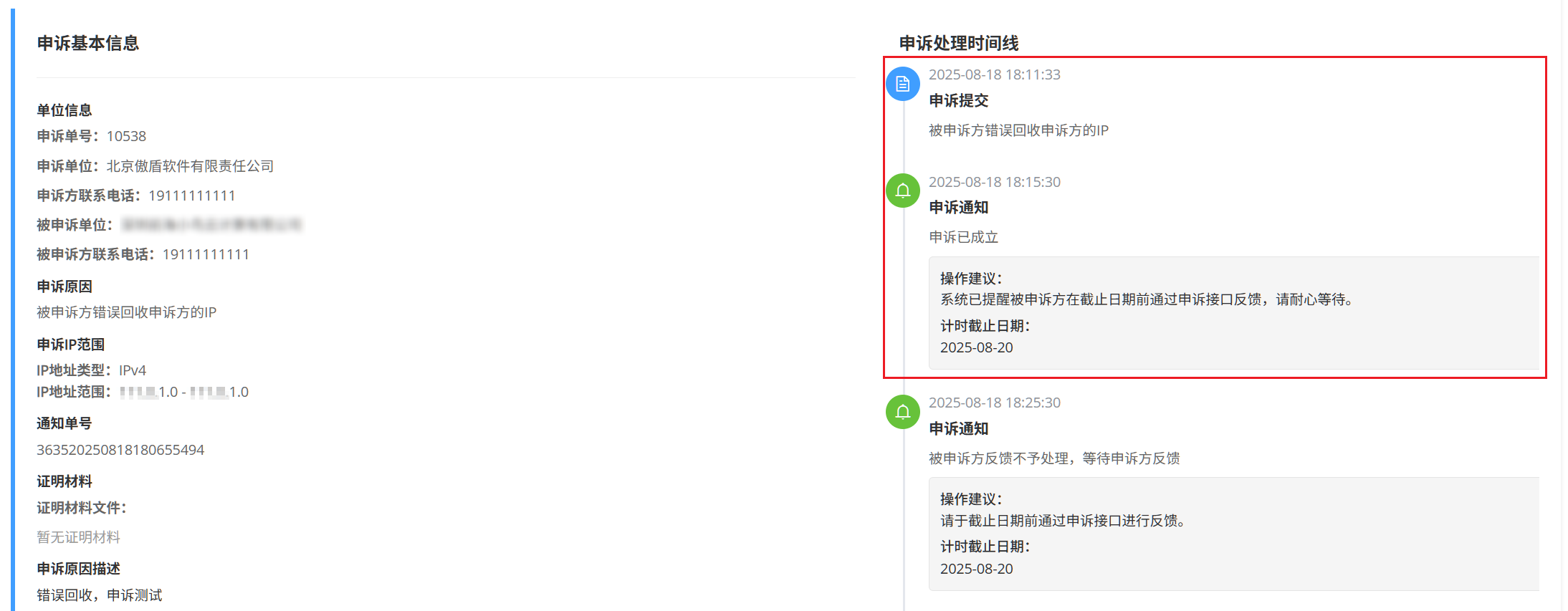 示例:上级报备单位错误回收我司IP地址,我方主动发起申诉